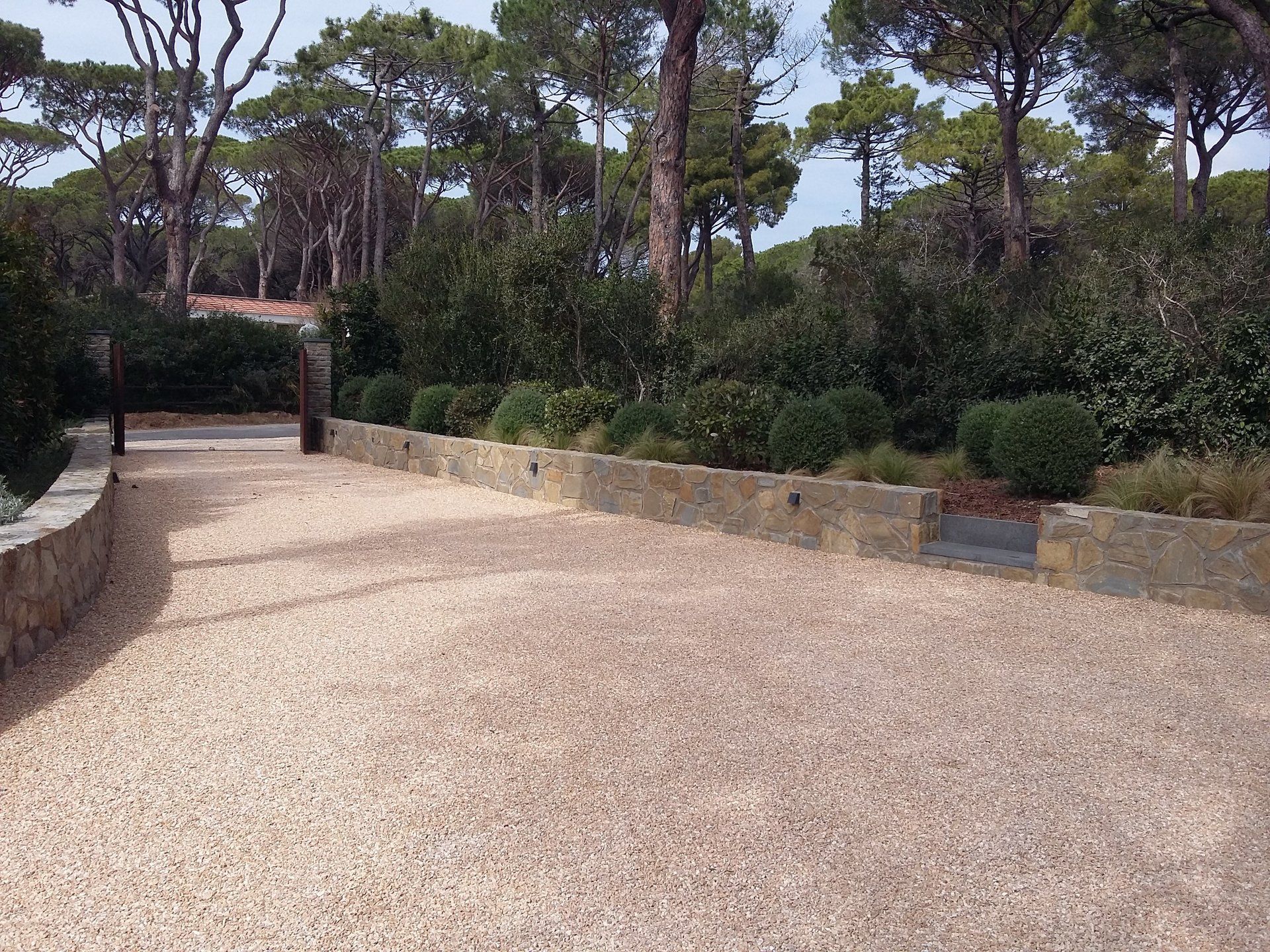 - Piazzali e camminamenti, anche carrabili, con materiali naturali o artificiali (pietrame, ghiaia, tufo, stabilizzato), murati o a secco